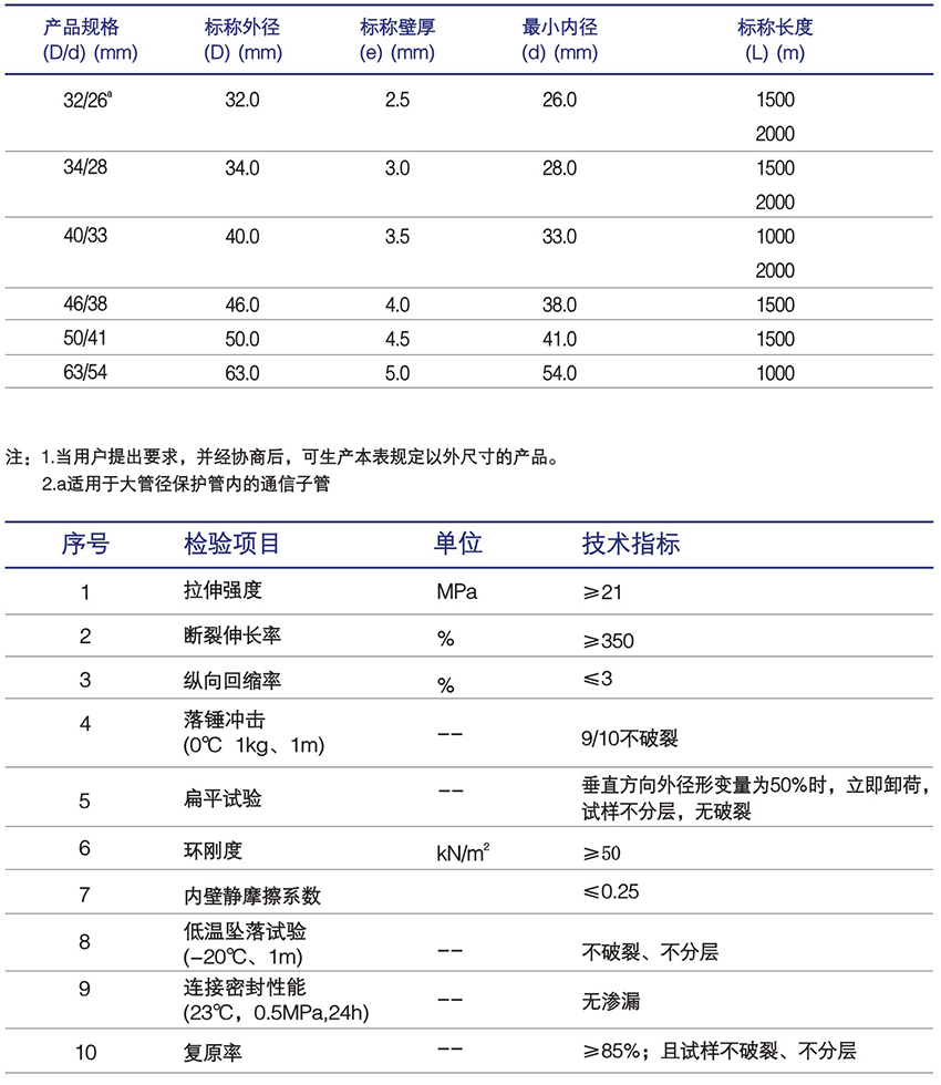 HDPE硅芯管規(guī)格尺寸