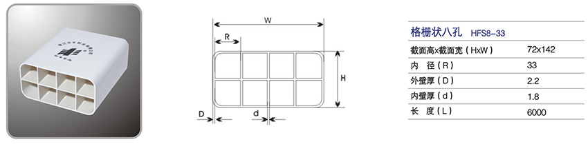 “豐”牌地下通信用PVC八孔柵格管選用優(yōu)質(zhì)聚氯乙烯樹脂為主要原料,以特選組合配方經(jīng)共混,一次擠出成型的一種新型光纜護(hù)套管,適用于通信光纜的穿導(dǎo)、隔離及保護(hù)。